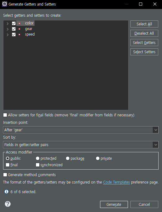 // System.out.println("현재 자동차의 속도는 "+myCar.getSpeed());
